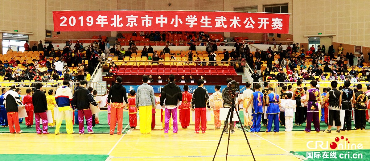 10月19日,北京市中小学武术公开赛在北京地坛体育馆举行。来自北京市133所中小学及俱乐部的近1200多名中小学生展开了各个比赛项目的角逐。